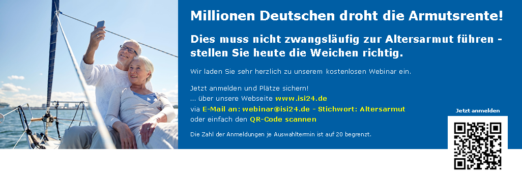 Jeder zweite Neurentner wird ab 2030 eine „ Armutsrente “ auf Höhe der Grundsicherung erhalten. Auch Sie könnten davon als Durchschnittsverdiener betroffen sein – wie Sie in unserem kostenlosen Webinar erfahren werden. Denn schon heute
