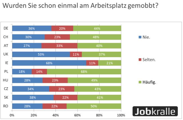 (Wien, 25.11.2016) Mobbing kann in fast allen Lebensbereichen vorkommen und betroffene Personen sowohl psychisch als auch physisch stark belasten. Heutzutage ist auch die Arbeitswelt intensiv von diesem Problem betroffen. Die Jobsuchmaschine Jobkralle / Jobswype fragte