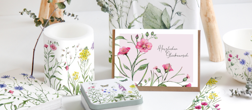 Grätz Verlag freut sich über die neue Illustratorin Sophia Drescher im Verlagsprogramm. Seit Frühjahr 2022 ist Sophia Drescher mit ihrer eigenen Kollektion „Wildblumen“ im Verlag vertreten. In der ersten Kollektion sind rund 20 Produkte aus