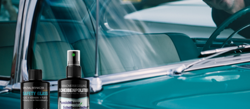 Die Frontscheibe des Autos ist das Schutzschild für seine Insassen. Verschleiß und Mikrokratzer durch Scheibenwischer und Waschstraßen verschlechtern mit der Zeit Eigenschaften der Autoscheibe. Autoscheiben sind wie alle Glasoberflächen unterm Mikroskop betrachtet nicht ganz glatt. Moderne Nanochemie konstruiert Glasmoleküle (ein amorphes Siliciumoxid), die sich in diese zerklüftete Oberfläche durch kovalente Bindung einfügen. Sie werden Glasoberflächen wie Frontscheiben geglättet und die Eigenschaften verbessert.
