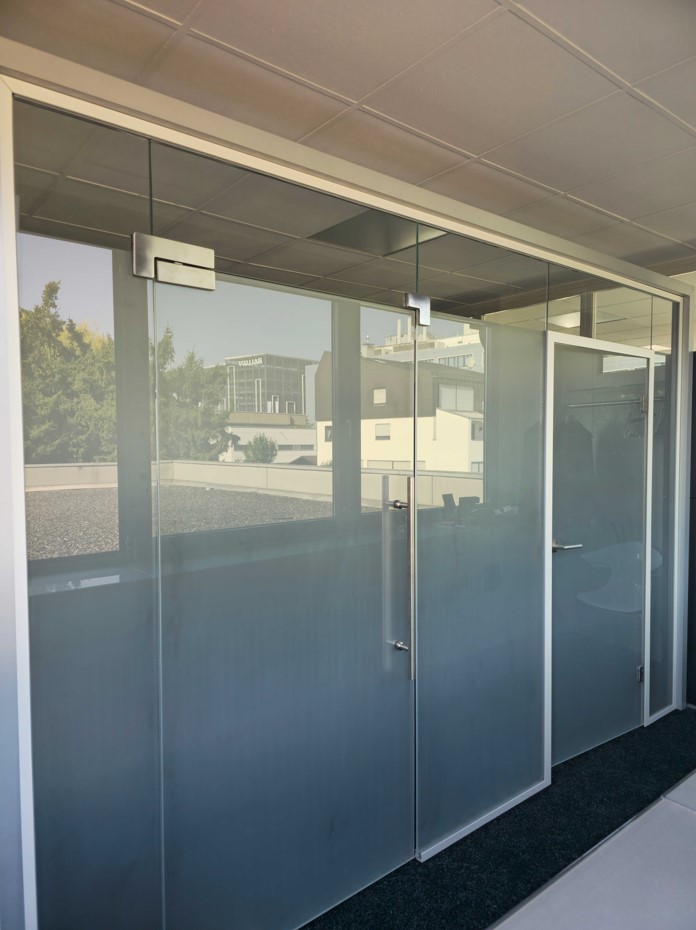 • FrameTec, die moderne Lösung für rahmenlose Glastrennwände, die Eleganz in Objektbauten bringt.