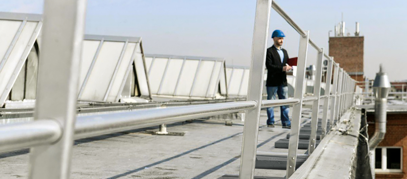 Neben dem Einsatz als SchutzGeländer auf Flachdächern und um Lichtkuppeln herum, kann das KRAUSE SchutzGeländer-System auch zum Schutz an Maschinen und Anlagen, Aufzugs- und Treppenschächten oder weiteren Anwendungsbereichen mit Absturzgefahr aufgebaut werden.