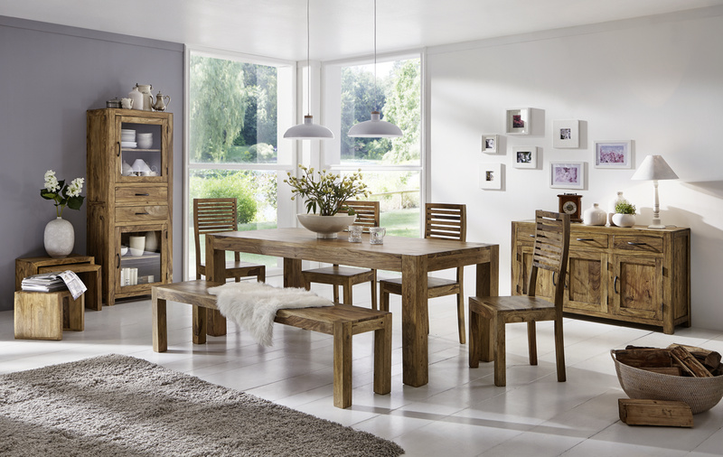 Auch der Eingangsbereich lässt sich mit minimalistisch designten Garderobenmöbeln aus edlem Palisander so ordentlich wie einladend gestalten, z.B. mit der Linie Torino. Das robuste Holz mit dem edlem Teakfinish, die klaren Linien und Details wie Metallgriffe verschönern auch Wohn- und Essbereiche, daher hat massivum auch Stühle, Tische sowie eine große Auswahl an Aufbewahrungsmöbeln im Portfolio.
