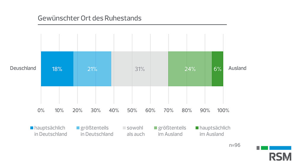 „Das Ergebnis überrascht mich. Ich hätte mit einem niedrigeren Anteil derjenigen gerechnet, die ihren Ruhestand im Ausland verbringen wollen“, sagt Manfred Steinborn, Wirtschaftsprüfer, Steuerberater und Rechtsanwalt bei RSM in Deutschland.