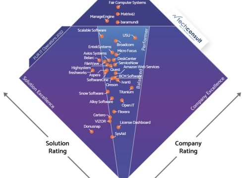 Unter dem Namen PUR-IT Ops 2022 – PUR steht für Professional User Rating – befragte das IT-Marktforschungsunternehmen techconsult über 3.000 AnwenderInnen zu ihren praktischen Erfahrungen mit 95 Lösungen sowie den entsprechenden Softwareherstellern. Die Hersteller- sowie die Lösungsbewertung erfolgte nach über 60 Kriterien in 14 Unterkategorien und berücksichtigte Messgrößen wie Funktionsumfang, Leistungsfähigkeit und Benutzerfreundlichkeit. Auch die Innovationskraft des Herstellers, Nachhaltigkeit, Service und Support, Online-Auftritt, Preis- und Bezugsmodelle sowie Informations- und Beratungsleistungen flossen in die Bewertungen ein.