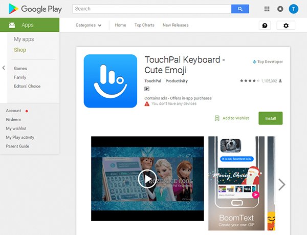 Die Virenanalysten von Doctor Web haben in der App TouchPal ein Werbe-Modul entdeckt. Es erstellt nicht-löschbare Widgets, zeigt Banner an und ermöglicht unerwünschte Pop-Ups. Über 50.000.000 Nutzer haben die App über den Google Play Store heruntergeladen.