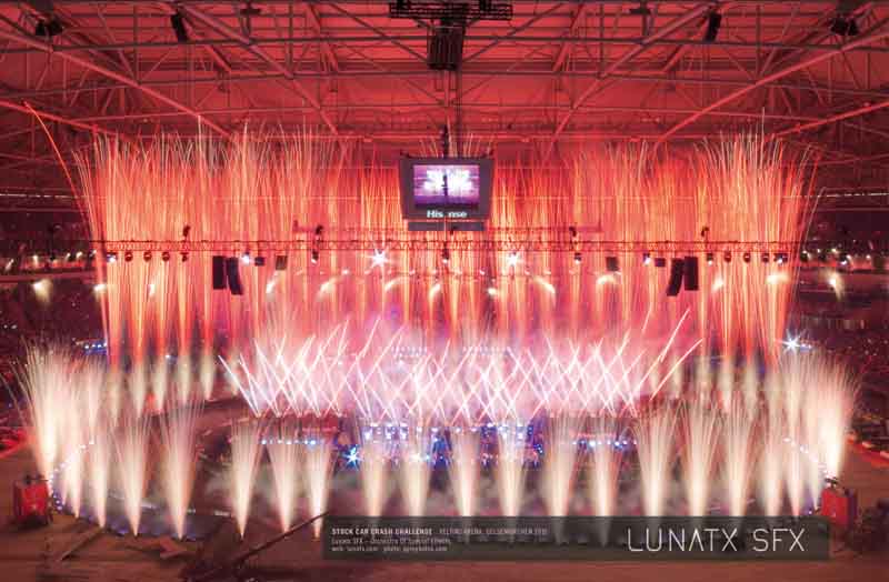 Für Stefan Raab stand am 10. Oktober die vorerst letzte „Stock Car Crash Challenge“ an – der Showmaster zieht sich Ende des Jahres aus dem TV-Geschäft zurück. Dementsprechend opulent auch die Inszenierung der Veranstaltung und einhergehend damit auch die Ansprüche an das Lunatx Set Up: Flammensysteme, CO2-Jets, One Shots, Streamer und die speziell konstruierte „Feuerschranke“ kamen wieder im großen Stil zum Einsatz.
