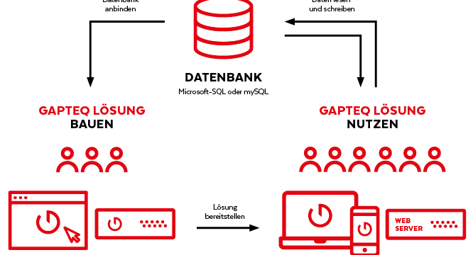 GAPTEQ ist eine moderne Low Code Plattform. Sie erlaubt das Erstellen individueller Datenbank Anwendungen und Web Applikationen im direkten Zusammenspiel mit SQL Datenbanken. Intuitiv per Drag & Drop, ohne HTML Know how oder Frontend Programmierung. Unternehmen digitalisieren so ihre Prozesse und Teilprozesse und schließen Applikationslücken in der Datenarbeit. GAPTEQ ist einfach in der Handhabung, clever im Pricing, smart in der Technologie. Das von den Business Spezialisten Hermann Hebben, Christian Stöllinger und Steffen Vierkorn im Jahr 2016 gegründete Unternehmen hat seinen Sitz mit Entwicklung, Support, Vertrieb und Partner Management im oberbayerischen Brannenburg. GAPTEQ ist On Premise und für die Cloud verfügbar. www.gapteq.com