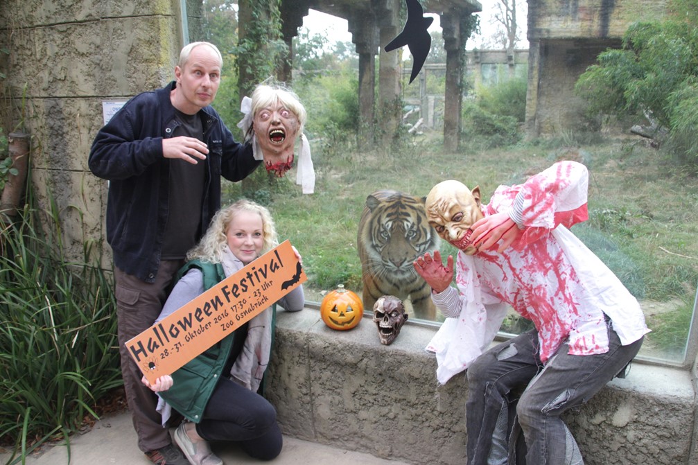 Zum ersten Mal lädt der Zoo Osnabrück in diesem Jahr zu einem viertägigen Halloween Festival ein. Mit einem vielfältigen Programm entsteht dabei nicht nur im schummrigen „Unterirdischen Zoo“ eine schaurige Unterwelt. Im gesamten, bunt beleuchteten Waldzoo wird der Spuk zu spüren sein: „Wir greifen ganz tief in die Horror-Trick-Kiste, damit den Besuchern regelrecht die Haare zu Berge stehen“, erklärt Ingo Reuther von „Spirit of Poison“ augenzwinkernd. Gemeinsam mit der Show- und Entertainment-Firma veranstaltet der Zoo in diesem Jahr das erste Halloween Festival. „Bei der Planung haben wir aber Groß und Klein bedacht. Den Kindern bieten wir in der monsterfreien Zone ein gemäßigtes, kinderfreundliches Halloween-Programm“, ergänzt er.