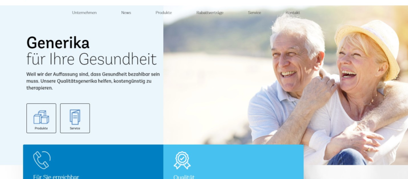Unternehmenswebsite des Generika-Anbieters mit moderner Struktur und kompakter Information