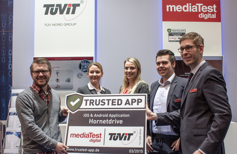 Hannover, 16.04.2015 – Die Anforderungen an Datenschutz und die Sicherheit von Apps nehmen stetig zu. Um dem Rechnung zu tragen, hat Hornetsecurity die Apps seines verschlüsselten Online-Cloudspeichers Hornetdrive auditieren lassen. Die Sicherheitsexperten von mediaTest digital und TÜViT (TÜV NORD GROUP) untersuchten die iOS- und Android-App von Hornetdrive und verliehen ihnen das begehrte Prüfsiegel „TRUSTED APP“.