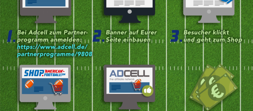Der Shop.American-Football.com hat ganz aktuell speziell für Vereine und Portalbertreiber ein Partnerprogramm / Affiliateprogramm aufgelegt, um diesen die Möglichkeit zu geben, an den Shop – Umsätzen 10 % Provision mitzuverdienen.
