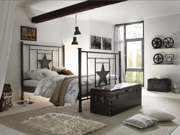 Puristisch gibt sich das Bett Titanio mit seiner geradlinigen Form. Der rustikale Antiklook unterstreicht den klassischen Stil. Die Liegefläche von 1,80 x 2,00 Meter bietet reichlich Platz. Dasselbe Format bieten Cielo und Heaven, die zusätzlich noch einen romantischen Himmel mitbringen. Sie unterscheiden sich durch ihre Form und Farbe. So ist Heaven aus dunkelgrauem Metall und wird mit hellen Leinenvorhängen ausgeliefert. Cielo ist wie Titanio in einem rostbraunen Ton gehalten. Ein besonderer Hingucker ist Matikas mit stilisierten Sternen. Mit einer Liegefläche von 1,40 x 2,00 Meter passt das graue Stahlbett auch in kleinere Räume. Alle Betten können bei massivum bequem online bestellt werden.