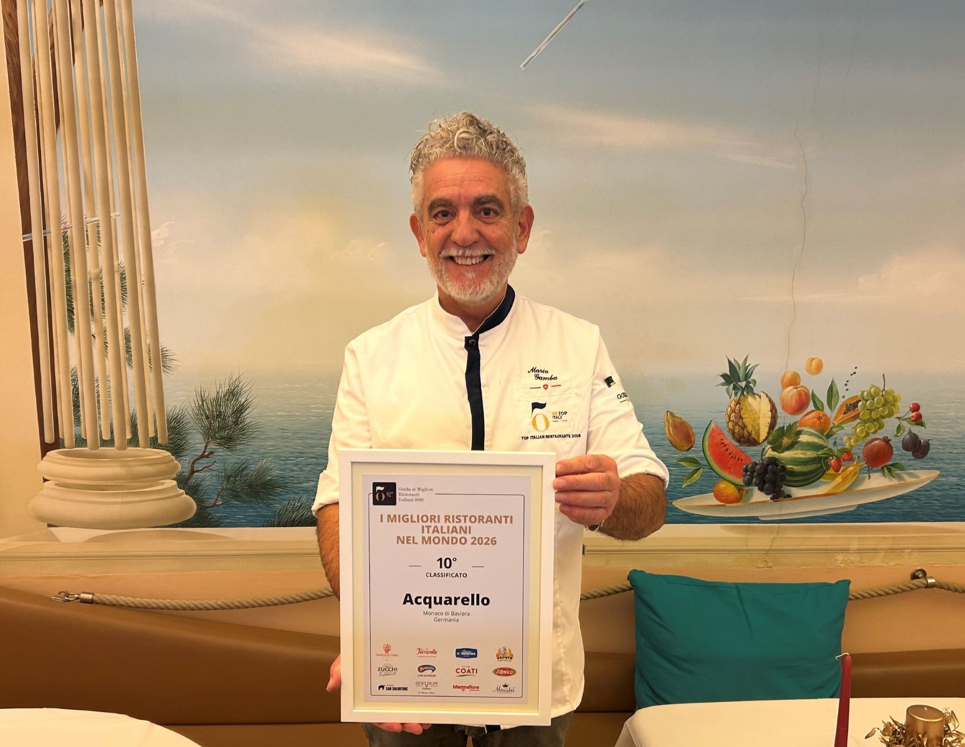 Die „50 Top Italy“ Jury würdigt das Acquarello unter der Leitung von Mario Gamba, den Sänger Al Bano den „Puccini der italienischen Küche“ nennt, als unverzichtbaren Referenzpunkt für italienische Küche in München: „In Mario Gambas Reich, das in einem ruhigen Münchner Wohnviertel liegt, fühlt man sich beim Überschreiten der Schwelle wie in Italien. Die Pastellfarben eines Frühlingsmorgens und die Düfte des Mittelmeers bilden die Kulisse, darunter auch der Duft von exzellentem Kaffee. Die langjährige internationale Erfahrung des Küchenchefs hat ihn dazu inspiriert, eine Speisekarte zu kreieren, die Augen und Gaumen gleichermaßen erfreut – mit angenehmer Säure und nie aufdringlicher Süße. Die frische Pasta ist hervorragend, insbesondere die saisonalen Trüffel-Tagliolini. All dies in einer eleganten und entspannten Atmosphäre, die zum Genuss eines zweiten oder dritten Glases einlädt. Der Service ist eine der Stärken: freundlich, aufmerksam, nie aufdringlich, versteht es, den Abend zu gestalten und mit natürlicher Professionalität die Geschichte Italiens zu erzählen.“