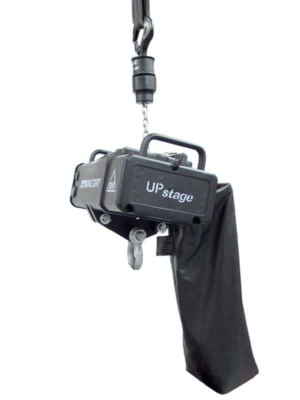 Movecat hat mit UPplus einen D8 Plus Elektrokettenzug auf Basis der Compact Baureihe speziell für den Riggingeinsatz bei Montage und Demontage von Bühnen- und Studioeinrichtungen im Tourneebetrieb konzipiert. Der schnelle Auf- und Abbau ohne die sonst vorgeschriebene „zweite“ Sicherung bei D8 Anwendungen ist einer der größten Vorteile des UPplus.
