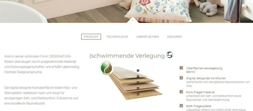 Hohe Trittschalldämmung mit unverwechselbaren Designbelag Dekoren – das Naturmaterial Kork im Designerlook