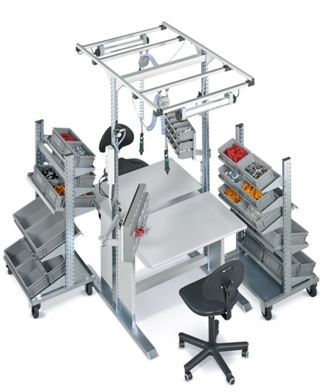 FAMI sorgt für die Steigerung der Effizienz und garantiert einen höchstflexiblen Materialfluss. Das FAMI Arbeitsplatzsystem lässt sich exzellent an eine moderne Produktionsinfrastruktur anpassen. Mit dem Baukastenprinzip der Arbeitsplätze lassen sich ganze Arbeitslandschaften bis ins Details planen.