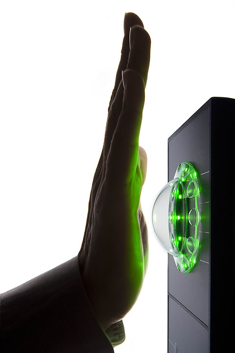 Das bestimmende Designelement des INTUS 1600PS Handvenenerkennungs-Lesers ist das markante MagicEye. Der Glasdom schützt einerseits den biometrischen Sensor vor Umwelteinflüssen, andererseits signalisiert er unübersehbar den Zustand des Systems wie Person erkannt, Zutritt derzeit nicht erlaubt und leitet den Benutzer bei der intuitiven Bedienung an.