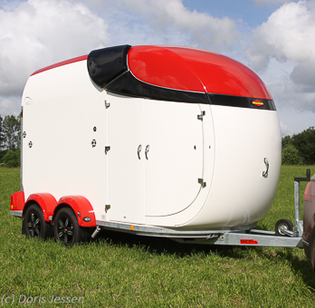 Das Modell Böckmann Neo L ist ein Zweipferde-Anhänger der Premium-Klasse, der sich vor allem für Pferdesportler eignet, die auf außergewöhnliches Design, viel Platz für großes Gepäck und maximalen Komfort Wert legen. Der Luxus hat allerdings auch seinen stolzen Preis: Mit rund 18.500 Euro liegt er in der Spitzengruppe der Polyesteranhänger, mit ein wenig mehr Farbe lag der Testanhänger bei 18.797 Euro.