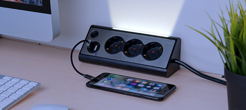 Den Durchblick behalten: Dank eingebautem LED-Licht hat man auch in dunkleren Ecken einen Blick auf die Steckdosenleiste und sieht sofort, wo man noch ein Gerät einstecken kann. Auch perfekt als Nachtlicht neben dem Bett.