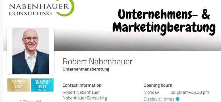 Steinach im August 2021 – Robert Nabenhauer ist seit über 20 Jahren Unternehmer, Trainer, Berater, Coach, Buchautor und Gründer der Nabenhauer Consulting. Sein Herzensthema ist die Entwicklung von Menschen und Organisationen. Nabenhauer Consulting bringt mit tollen Dienstleistungen, wie Social Media Club, Coachings, Bücher, Webinare, Workshops aktuelle Angebote auf den Markt. Der Geschäftsführer von Nabenhauer Consulting Robert Nabenhauer wurde in Berlin vom Service „Proven Expert“ mit Zertifikate Top Dienstleister 2017 und Top Empfehlung 2017 ausgezeichnet. 95% aller Kunden haben seine Dienstleistungen in den letzten 12 Monate des vergangenen Jahres 2017 mit einer Gesamtnote von „Sehr gut“ bewertet und sie weiterempfohlen. Und dies kommt bei den Kunden gut an. Mehr über die erstaunlichen Ergebnissen von Nabenhauer Consulting und Referenzen jetzt im Internet unter: https://www.provenexpert.com/robert-nabenhauer/