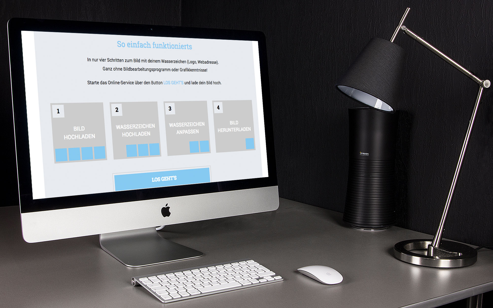 In nur vier Schritten kann online ein Wasserzeichen auf ein Bild gepackt und zur weiteren Verwendung heruntergeladen werden.