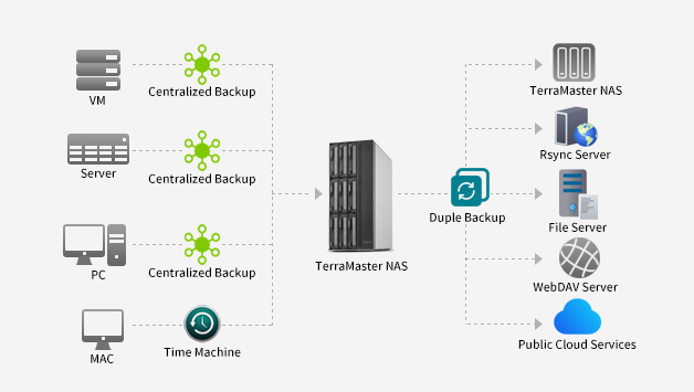 Die zentralisierte Sicherung und das Duple Backup von TerraMaster lösen diese Probleme durch die Bereitstellung erweiterter Funktionen und einer intuitiven Benutzeroberfläche, die den Datenschutz vereinfachen und ihn für Unternehmen zugänglicher und effizienter machen.