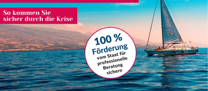 53.000 EUR staatliche Zuschüsse für Wachstum und Innovation in den ersten Wochen der Corona-Pandemie. 16-20 Tage qualifizierte Beratung für Ihr Krisenmanagement PLUS zu 100 % bzw. zu 80 % durch den Staat bezuschusst. Eine Qualifizierungsinitiative für Ihre Mitarbeiter und klug genutzte Zeit, um bereits in der Krise optimal in die digitale Zukunft durchzustarten.